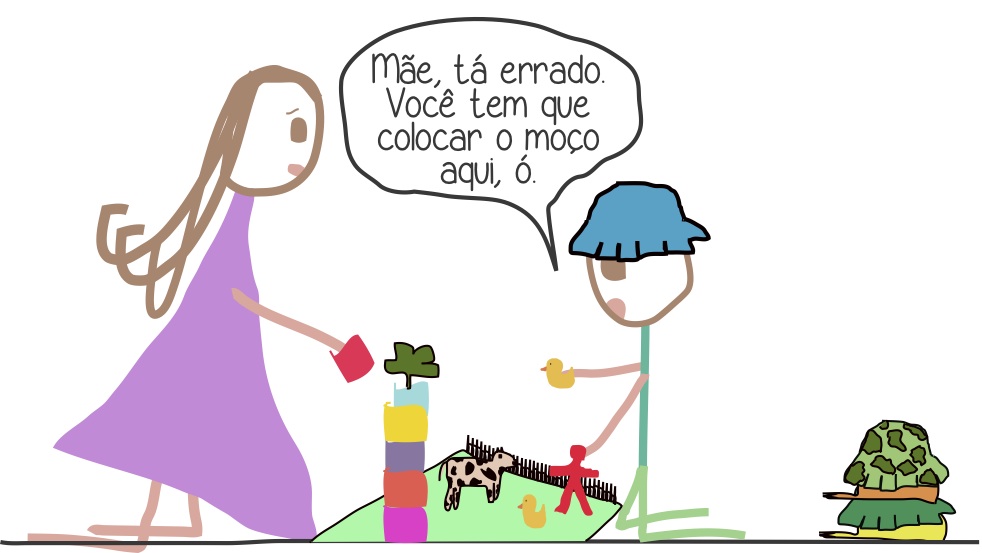 Então paro de brincar (já que eu faço tudo errado, mesmo) e fico observando-o mexer nas pecinhas e fazer sons de bichos da fazenda. Tão pequeno e inocente nesse mundo…