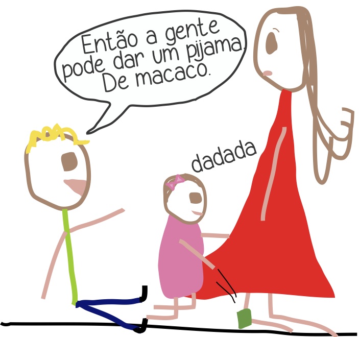 Ok, meu filho está super chateado porque, por acaso, eu, ele e minha filha temos pijamas com estampa de macacos e meu marido não tem.