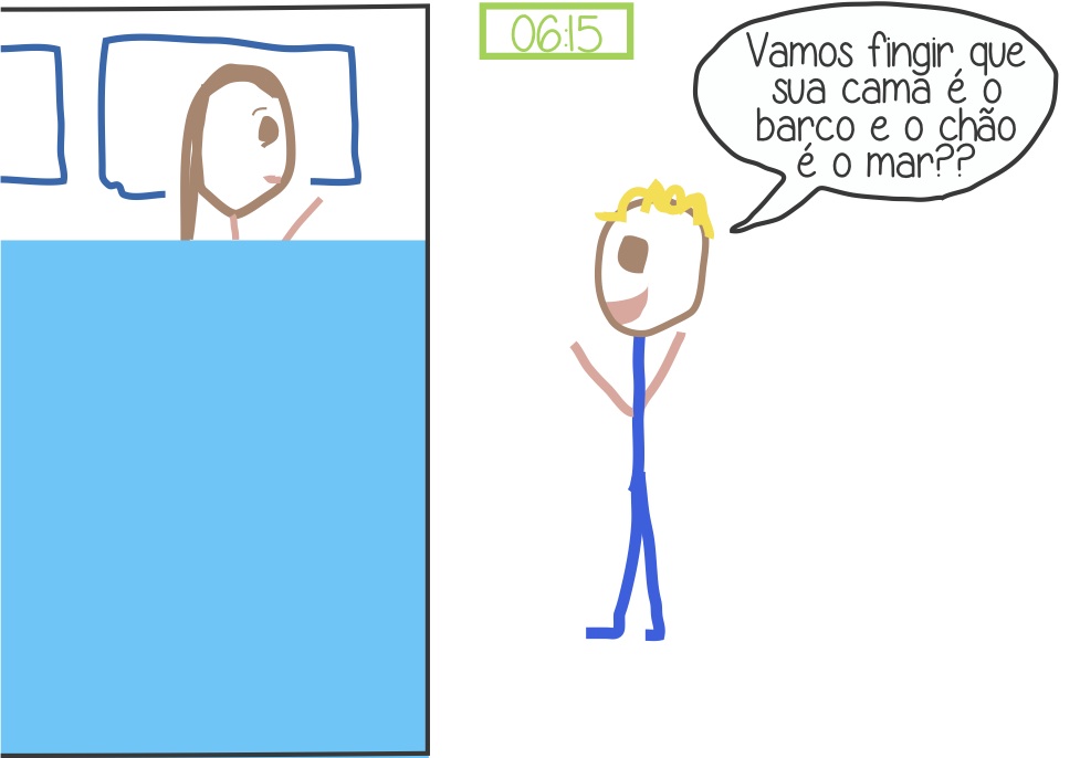 Meu filho inventou uma nova brincadeira que ele adora. Chama-se “Vamos-fingir-que-sua-cama-é-um-barco”, e ele brinca todo dia. Várias vezes por dia.