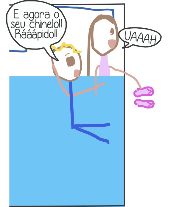 EU: Agora chega de coisas filho, o barco já está muito cheio. Deixa o chinelo do papai aí no chão.