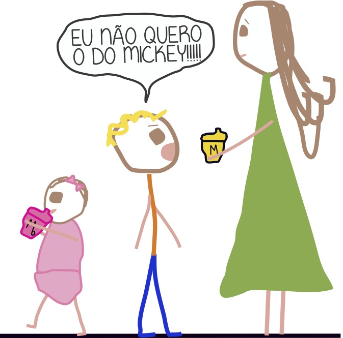 EU: Filho, toma aqui o copo do Mickey pra você e o da Minnie pra sua irmã.