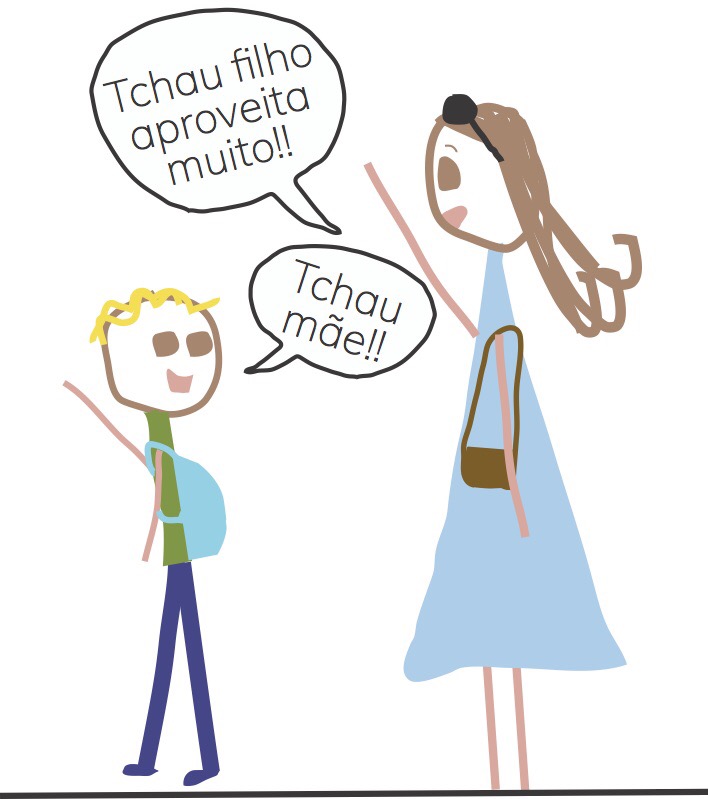 Uma mãe leva seu filho de nove anos à colônia de férias e, na frente dos amigos dele fala: