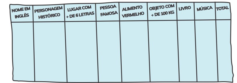 Ultimamente, ele tem reclamado que as categorias comuns de STOP são muito sem graça. Sabe, os de sempre? Nome, Comida, CEP, Minha Tia É, etc?? (Aaaah, essa geração alpham acelerada e impaciente)
