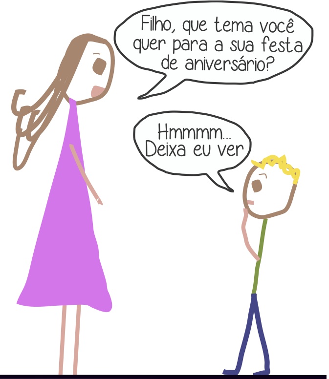 Estava super empolgada, pois seria sua primeira festinha com a turma da escola!! Aí perguntei pra ele sobre qual tema ele gostaria de fazer: