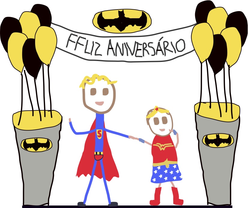 E ele foi feliz da vida, vestido de Super Homem na sua festa do Batman.