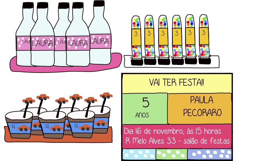 1) kit festa: 20 águas personalizadas, 20 tubinhos de jujuba, 60 selinhos para pote de brigadeiro, 20 toppers e 20 convites (a mesa da festa fica muito fofa decorada!!)