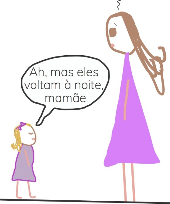 EU (me achando esperta): Mas eu mando todos embora quando te coloco pra dormir, meu amor.