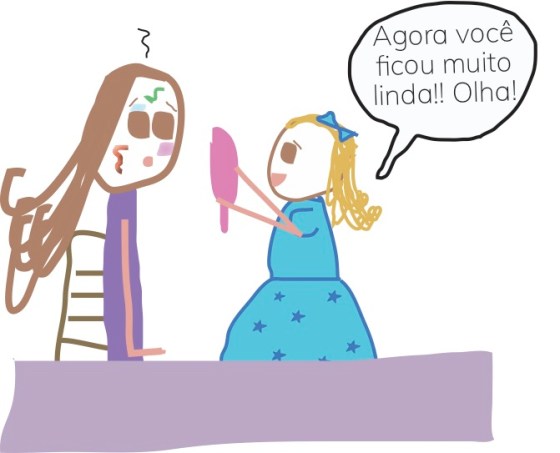 EU: Viu filha? Você pode se maquiar, em vez de maquiar a mamãe, você vai ficar linda!