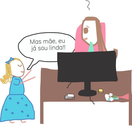 Estou sentada no computador terminando um texto, quando minha filha de três anos aparece e diz que quer me maquiar.