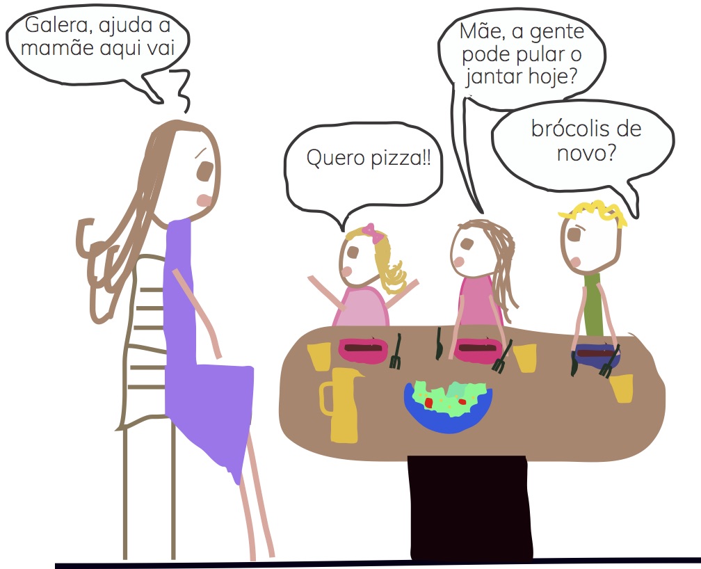 As meninas estão curiosas, Simon me olha com aquele tom de quem não põe muita fé, como quem diz “O que será que minha mãe, dinossaura, pré histórica, inventou agora?”