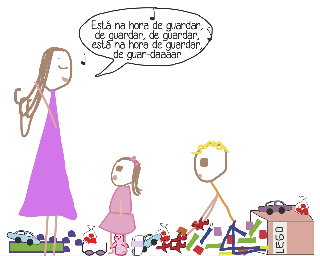 Digamos que você está em casa, fim da tarde de um domingo. Você olha em volta e está tudo uma zona. O lego espalhado, as bolinhas de gude jogadas por toda a sala, os livros todos no chão, os bloquinhos de madeira espalhados misturado com o lego, lápis de cor, folhas de papel…. Você olha tudo em volta e pensa “Como, meu Deus, como eu deixei chegar nisso?? Porque eu não mandei ir guardando a cada novo brinquedo que eles escolhiam?”