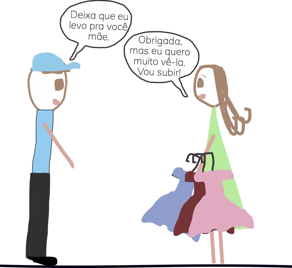 ELE: Mãe, deixa que eu entrego lá em cima.