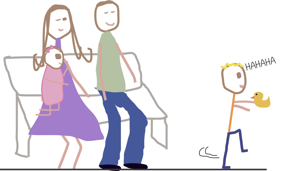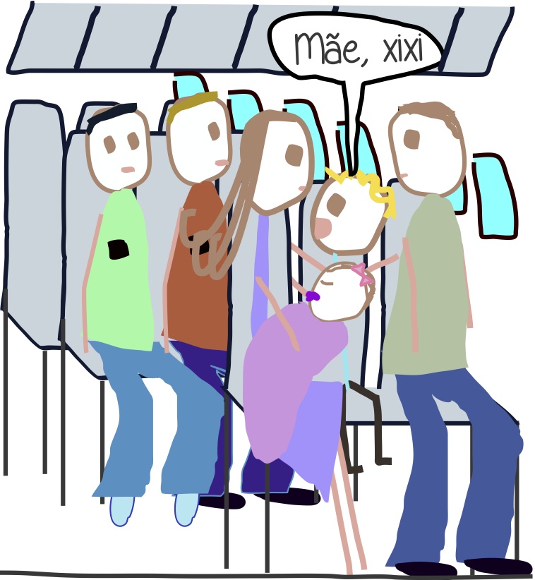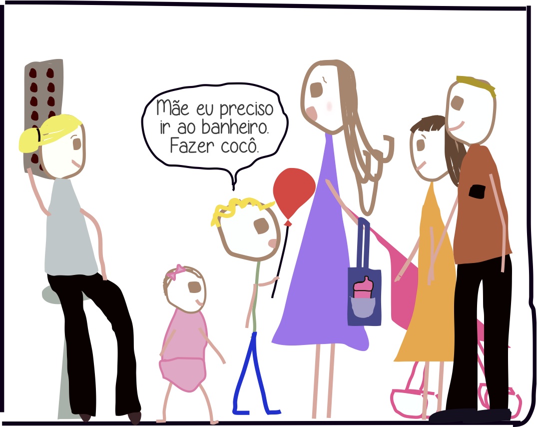 Eles demoraram para voltar, pois acabaram parando para brincar no corredor. Meu filho fez amizade três cadeiras para frente, com uma menininha chamada Daniela que tinha uns brinquedos legais.