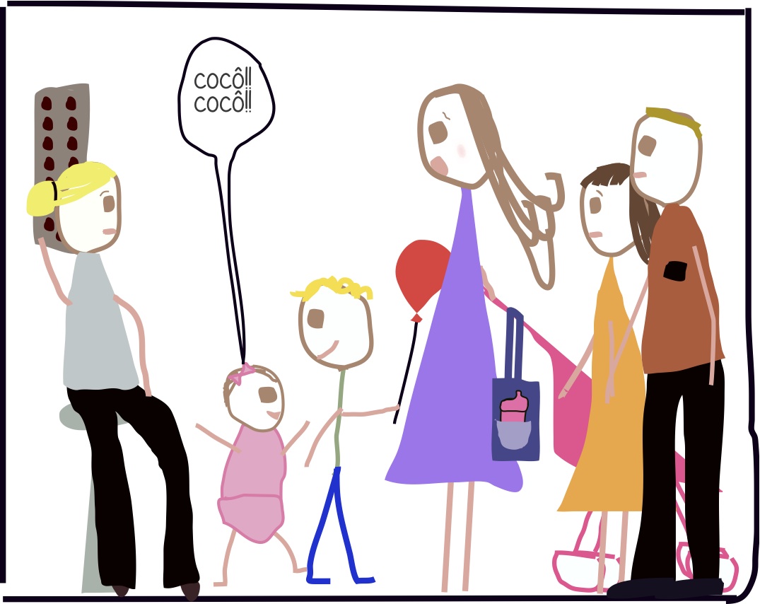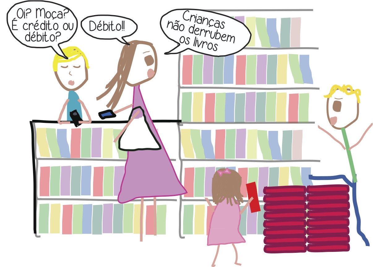 Bom, tiramos toooooda a tralha. Aí tiramos a minha filha. Fechamos o carrinho, passamos o carrinho, re-abrimos o carrinho, colocamos a criança de volta. Ela, obviamente, não quer mais ficar lá sentada e faz escândalo.