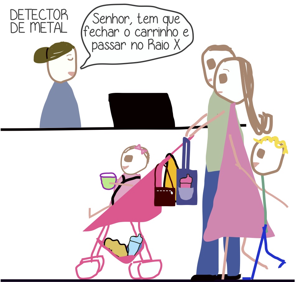 Gente, o que eles acham que eu vou esconder num carrinho de bebê? Armas? Líquidos? Explosivos? Antraz?