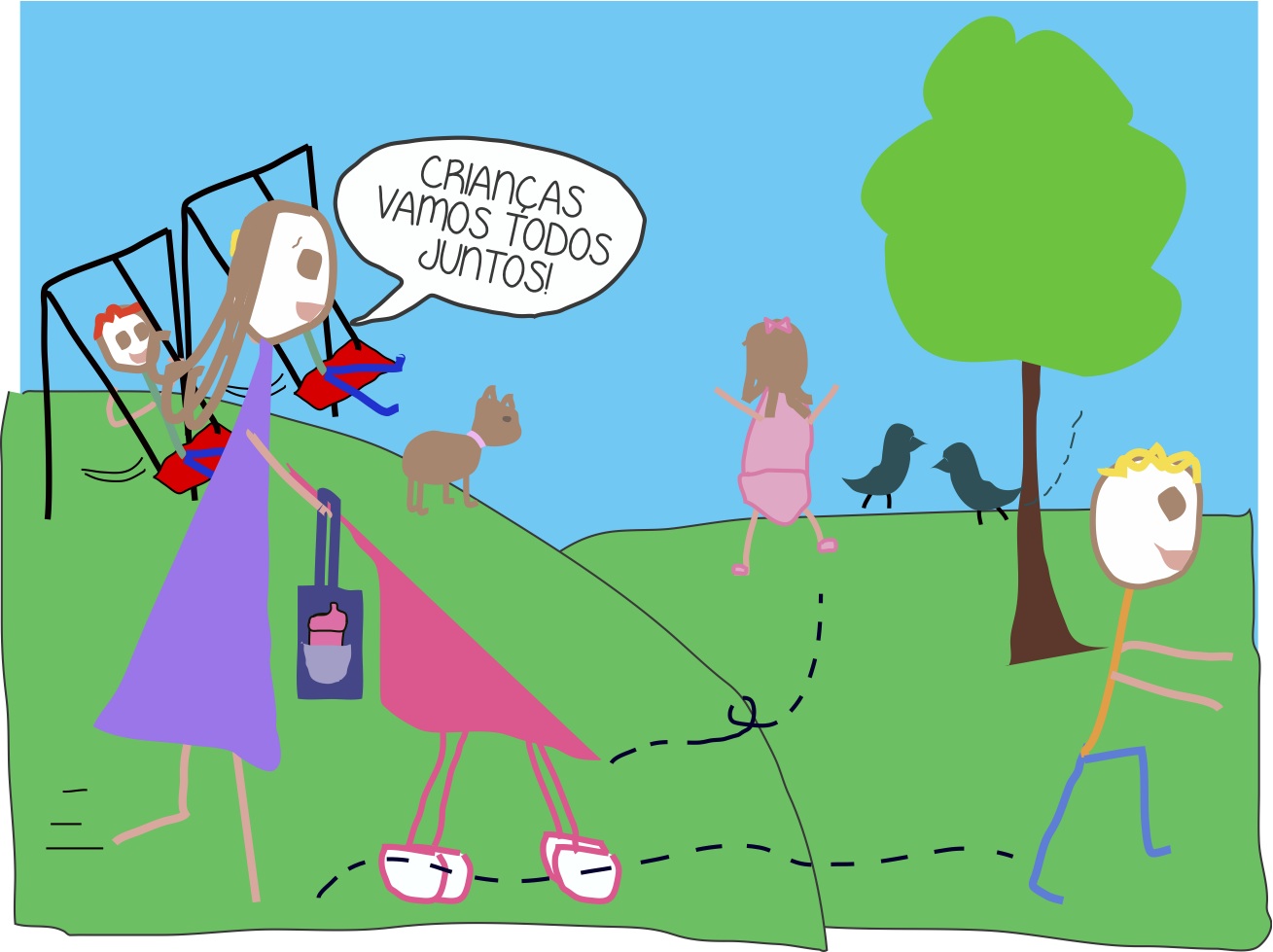 Minha filha acordou, como quem sente a ausência do irmão, e também quis passear.
